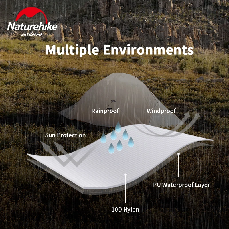 Naturehike 10D Nylon Camping Tent 930g Ultralight New Upgrade Cloud Up 1-2 People Tent Silicon Coat