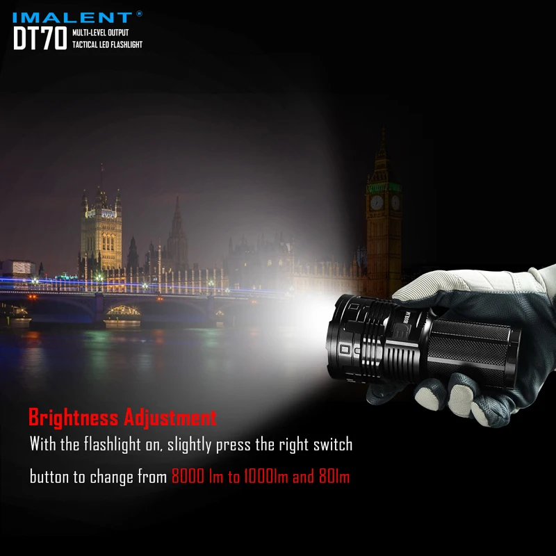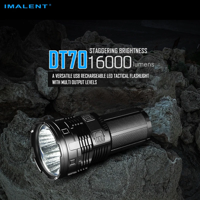 16000 Lumens IMALENT DT70 USB Rechargeable LED Tactical Flashlight with Multi-level Output & OLED D